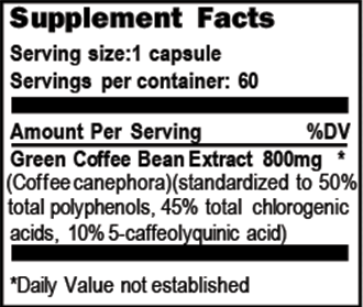 • One serving of our Pure Green Coffee Bean™ contains 1600mg of Green Coffee Bean extract with 45% Chlorogenic Acid (CGA).