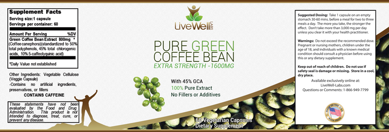 LiveWell Labs Pure Green Coffee Bean™ extract was created to meet the growing demands of consumers for a high quality, powerful green coffee supplement at the best price possible. We never use fillers, binders, or synthetic ingredients. We always intensely research every aspect of the product to ensure that we can deliver the highest quality Green Coffee Bean Extract to you.